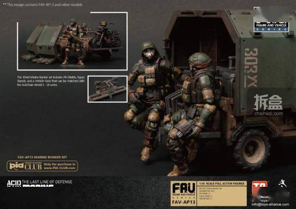 此套装包含便携式防爆盾、模型底座、载具悬挂架,可与《酸雨战争》1∶18系列搭配。